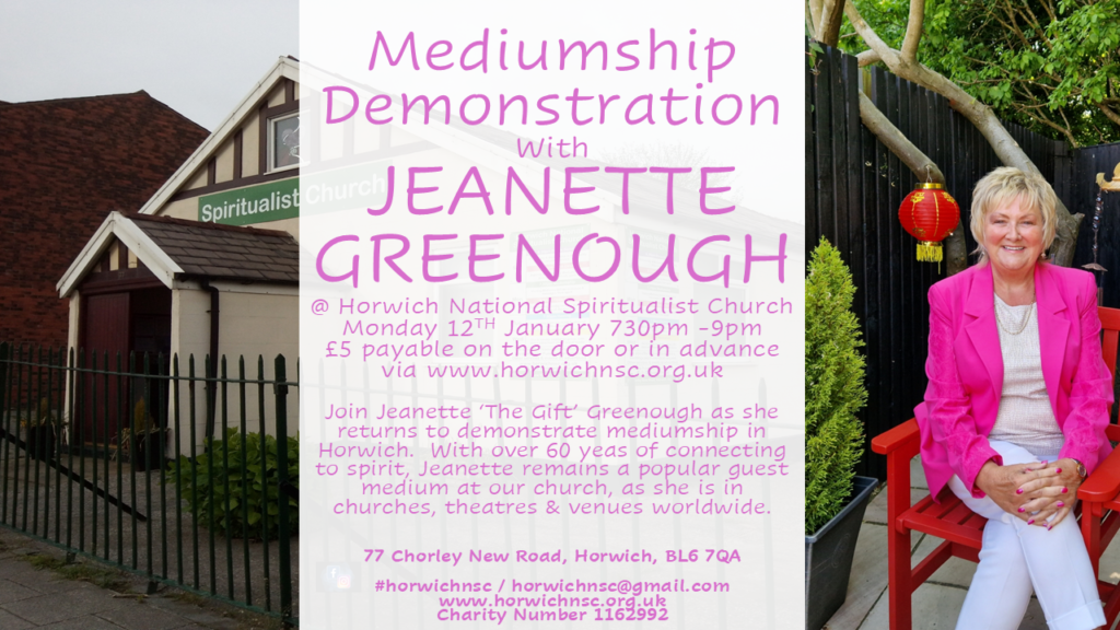 Jeanette returns to Horwich to start the new year off with a terrific evening of mediumship. You are able to prebook via our booking hub www.ticketsource.co.uk/horwich-spiritualist-church or pay on the day. Places are just £5 for this event